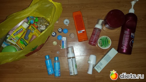 Нашла кучу одноразовых гелей и шампуней, просрочка в помойке, остальное в спорт-зале. А так еще разбирать и разбирать)))