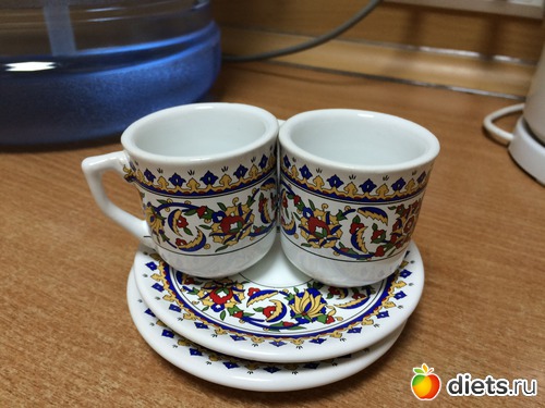Засчитываю как одну вещь, кофейные чашечки, отправились на работу.