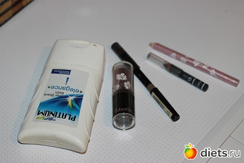 Просроченный гель после бритья, старая помада и остатки карандашей - все в помойку ))