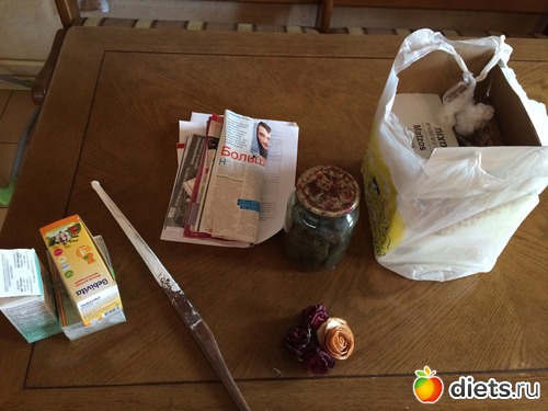 Просроченные чаи и травки, старый журнал, палка для размешивания краски, просроченная консервация, засушенные Цветы и Розы из апельсина.