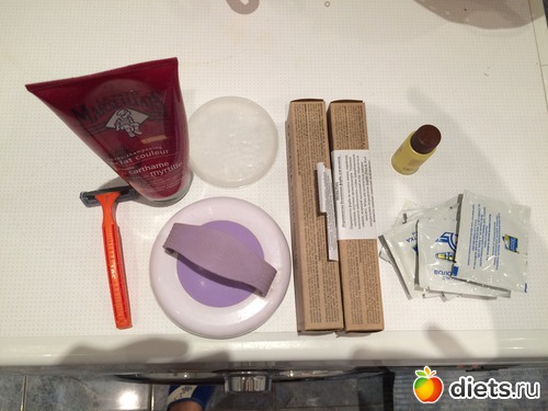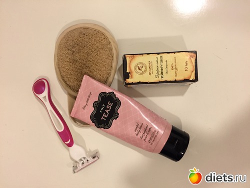 Бритвенный станок , мочалка для лица, просроченное эфирное масло и тюбик от крема для тела