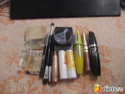 Порванные бусы, порванная цепочка, не подошедший мне крем для век, пуговица, старые тени и просроченная гигиеническая помада.