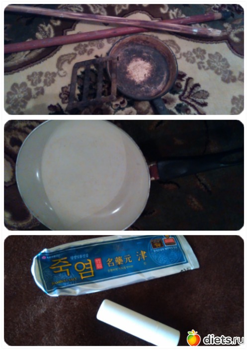 Какие-то две палки, сковорода и железяка - остались от прошлых хозяев. Старая сковорода - стала пригорать, тюбик от зубной пасты и бальзам для губ.