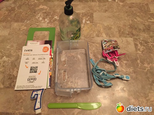 Следом за свечкой -цифрой 8, была найдена свечка -цифра 7 с прошлого дня рождения, рекламные флаеры, бутыль от жидкого мыла, ремешки от бутылок для воды (бутылки ранее были раз уморены днем ранее, пластиковый нож, непонятная коробка , найденная в морозилке холодильника