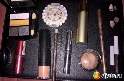 Разобрала шифонер, на выброс пошли 2 джемпера, 1 толстовка и 2 футболки. Вещи дополнила 2 огрызками карандашей - один для век, другой для бровей. Фоткать лень, устала сегодня очень, но вещи отправились в помойку