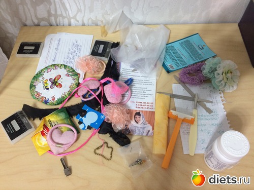 Всякая ерунда, резиночки растянутые, пипеточки, пустые коробочки от теней, перо от перьевой ручки, и т. п.
