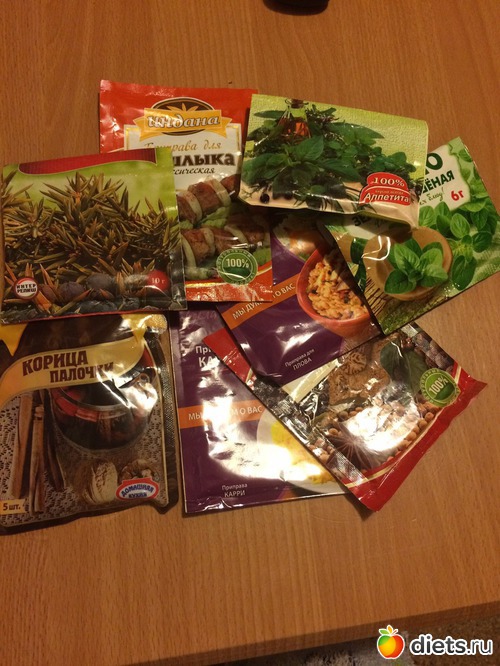 Разобрала залежи приправ, отправила в помойку просроченные пакетики. Их оказалось столько, что ещё на завтра хватит