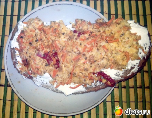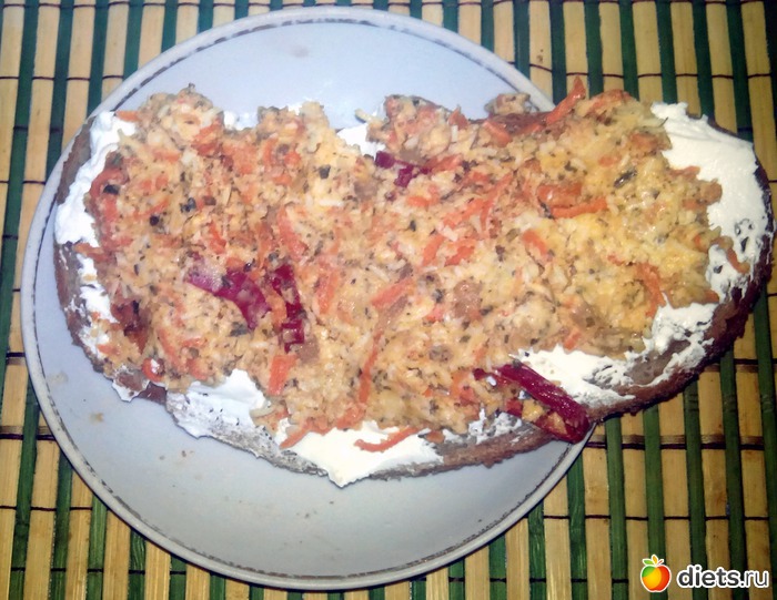 Еще один бутер из хлеба, греческого йогурта и корейской моркови с сыром.