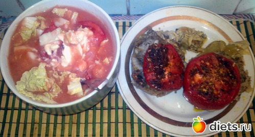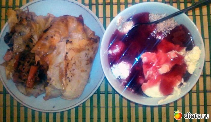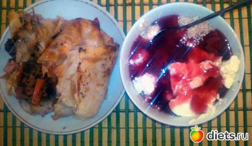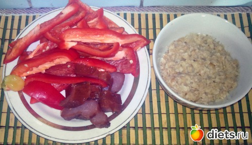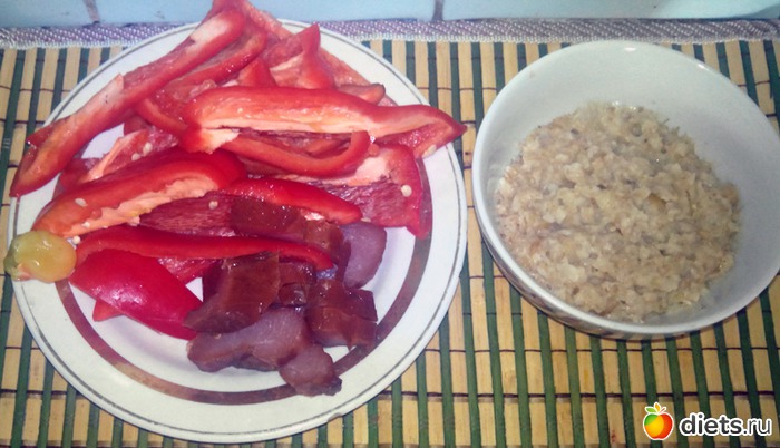 Перец, кстати, обошелся без соли. Просто макал кусочки в горчицу. И вполне неплохо получилось. Геркулес и несколько кусочков копченого филе.