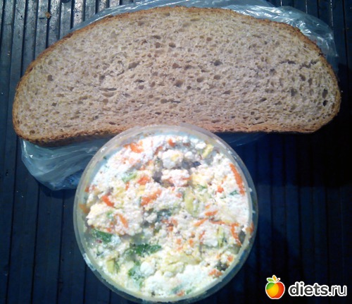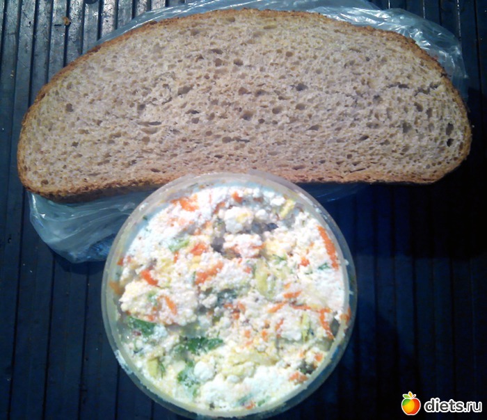Хлеб и... этакий варианта "ирландского рагу"... Греческий йогурт, творог, корейская морковь, пекинка и зелень. Сначала хотел просто смешал йогурт с зеленью. Потом подумал и нарезал туда остатки пекинки. Ее остался совсем маленький кочашок и туда как раз вошел. Потом добавил немного корейской моркови (решил заменить ею соль, кстати получилось). А творог пошел на завершение образа. А ведь сначала хотел всего лишь сделать прослойку между хлебом и колбасой.