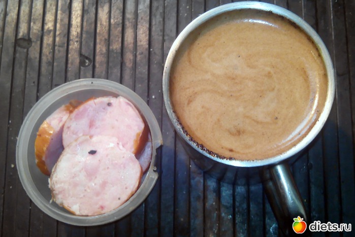 В этот раз вместо сыра была колбаса. А вся ее калорийность 244 кк! И кофе, как всегда.