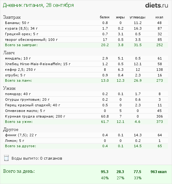 По калориям вот что получилось. Для меня это мало конечно, но желудок почему-то больше сегодня не принимал...