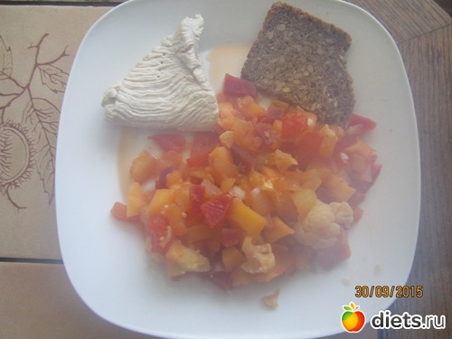 3. куриная грудка отварная, тушенные овощи (лук, кольраби, цветная капуста, свекла, картофель, помидор)... Читать полностью