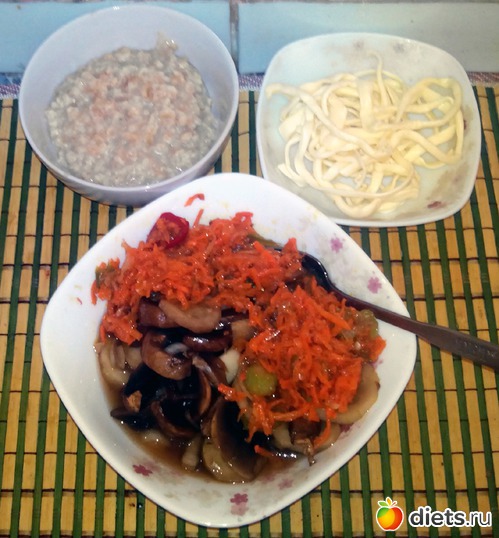 А еще были маринованные грибы с огурцами и корейская морковь, плюс козий сыр.