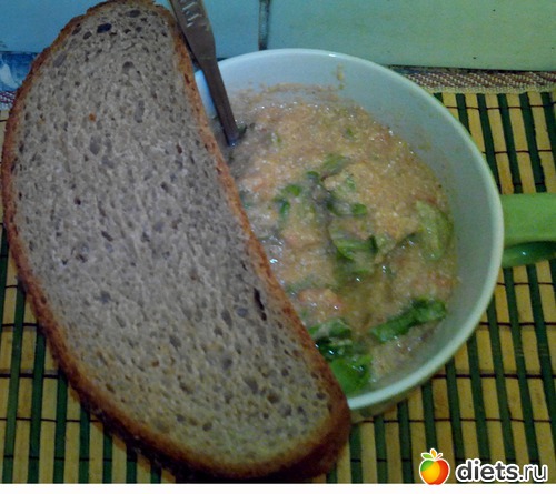 Короче, кусок огурца, помидорка, чеснок, соевый соус, яблочный уксус, творог перемешать и измельчить блендером. Перелить в чашку, добавить зеленый салат. Ну и хлеб. Получилось вполне сытно и вкусно.