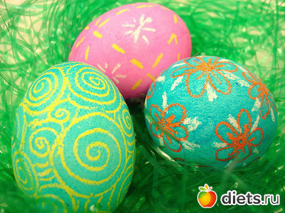 - Когда хлеб испечется и остынет освободите гнезда и поставьте туда крашеные пасхальные яйца, а те, что использовались при выпечке можно положить в какой-нибудь салат.