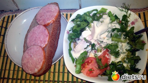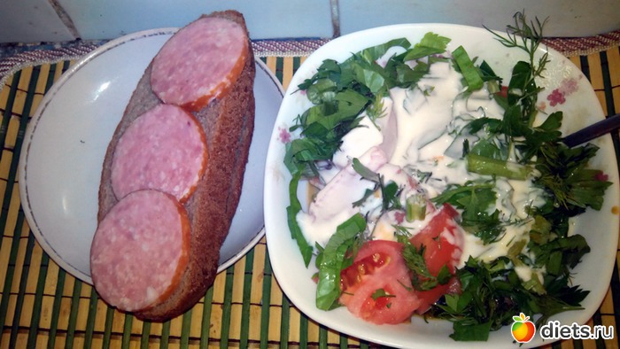 Сделал бутер из колбасы и хлеба, ну и салат...