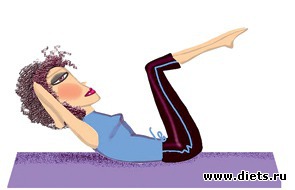 Лягте на спину, согнув колени и поставив ноги на пол. Руки лежат вдоль туловища на полу ладонями вниз. Поднимите ноги вертикально, не сгибая их. Пятки и колени прижаты друг к другу. Не расслабляя мышц живота, поднимите ноги еще выше, так, чтобы нижняя часть спины постепенно отрывалась от пола. Затем, делая медленный вдох, так же постепенно опуститесь вниз. Не отрывайте бедра от пола рывком, вы должны чувствовать, как работают мышцы живота. Продолжайте в течение 30 секунд.