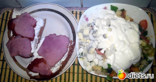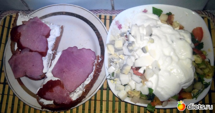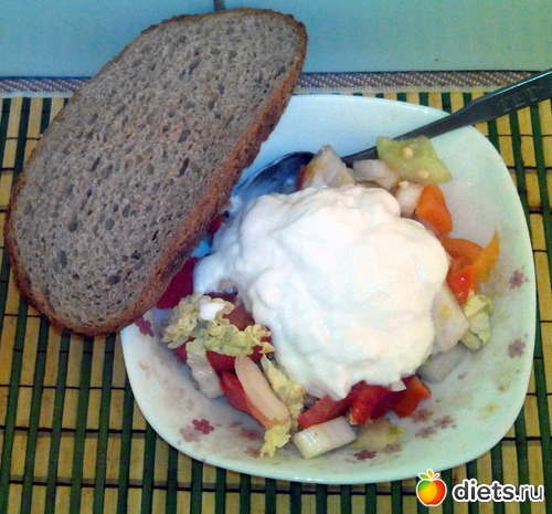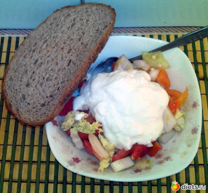 Короче, дальше меня не хватило и пришлось довольствоваться запасенным ранее салатом. Йогурт и хлеб прилагаются.