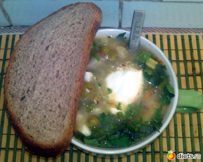 Это уже после похода в магазин. Остатки моего овощного супа. Пришлось его чередовать с борщом.