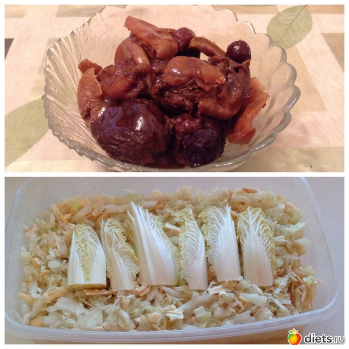 я потом сама его уже несколько раз делала, все просто: капуста, колбасный копченый сыр, чеснок, майонез... в этот раз делала без майонеза, ничем не хуже... капуста попалась сочная - пекинская, поэтому было сочно и без заправки...
