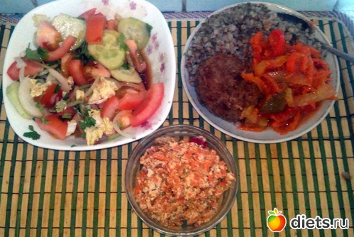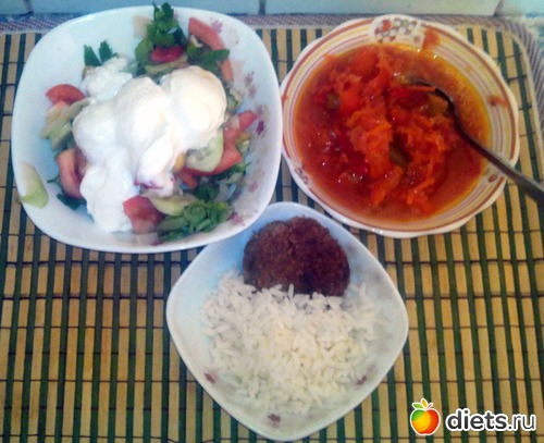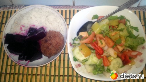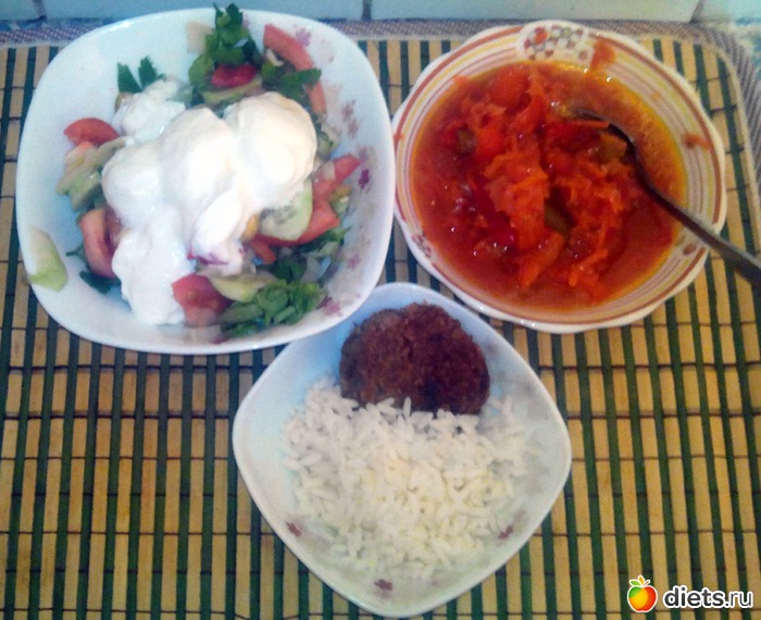 И я бы сделала порцию салата в ужин побольше, а рис вообще убрала бы на первую половину дня.