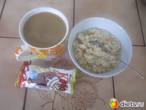 1. овсяная каша с курагой, кофе, Kinder Maxi King