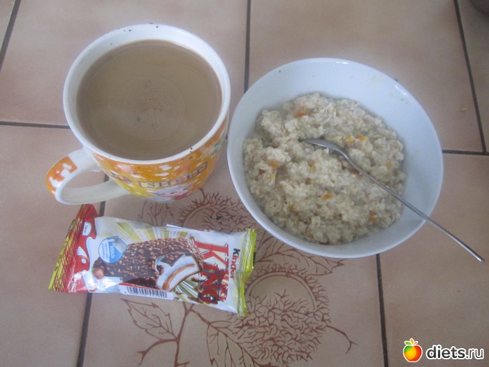 1. овсяная каша с курагой, кофе, Kinder Maxi King