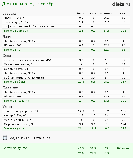 Калорийность продуктов