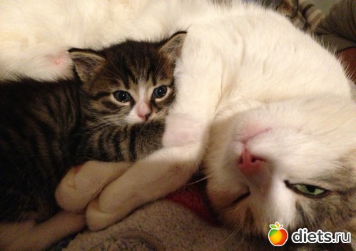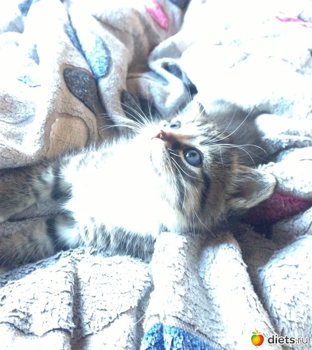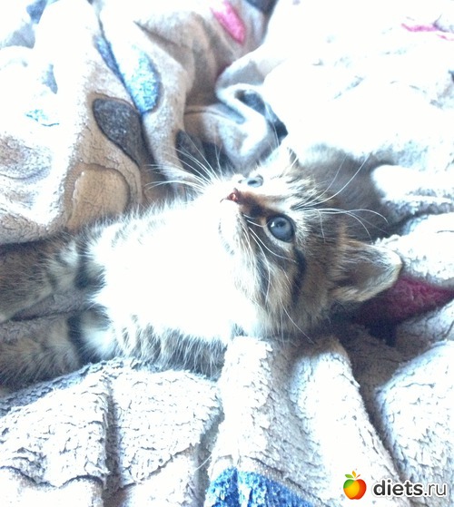 А! И ещё у меня пополнение в семействе, у меня котёнок прелестный появился, моя Муха одного всего и окатила! Оставили себе!