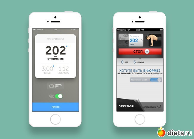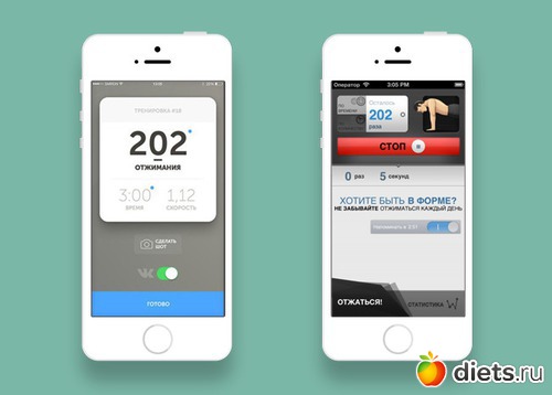 Приложение «Отжиматор» поможет вам делать физические упражнения правильно. Вам нужно просто выбрать режим и количество отжиманий: положите ваш телефон под грудь и при правильном опускании тела вы услышите звуковой сигнал.