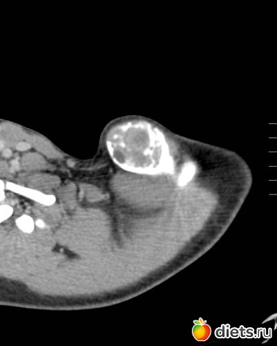 На МРТ врач обнаружил огромную кисту в области ключицы. Киста разрослась настолько, что косточка в ключице была вынуждена выгибаться как может.
