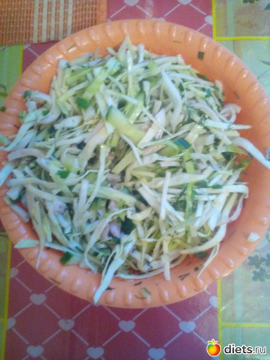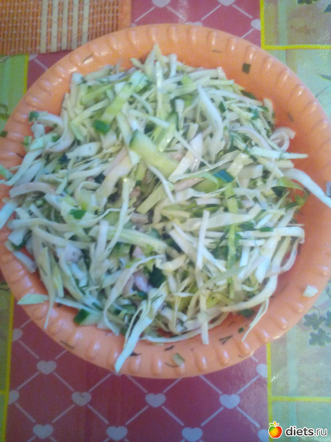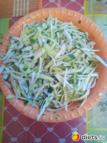 Кальмары, капуста, огурец-1:1:1/2, лук перо,1 ст.л раст.масла, соль по вкусу