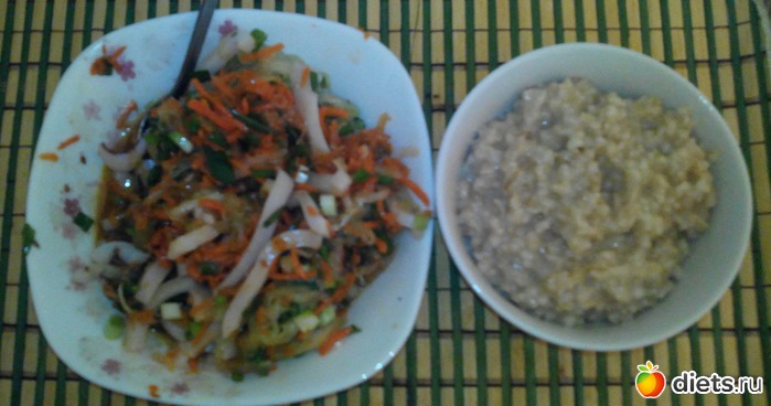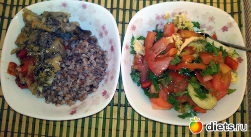 Салат. Гречневая каша и остатки вчерашнего минтая.