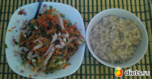 Поэтому я, сварив кашу, сделал себя салат с кальмарами.