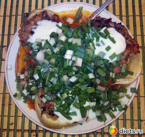 Еще я сегодня запек, точнее сказать, опять же протушил кабачки с куриным фаршем и овощами. Сначала блендером измельчил перец, лук и зелень. Потом смешал с фаршем. Потом в кабачки и в духовку.