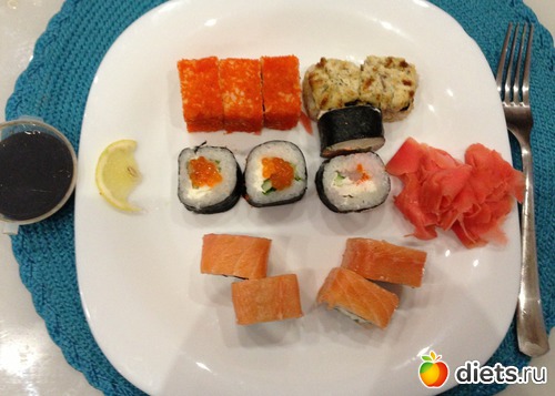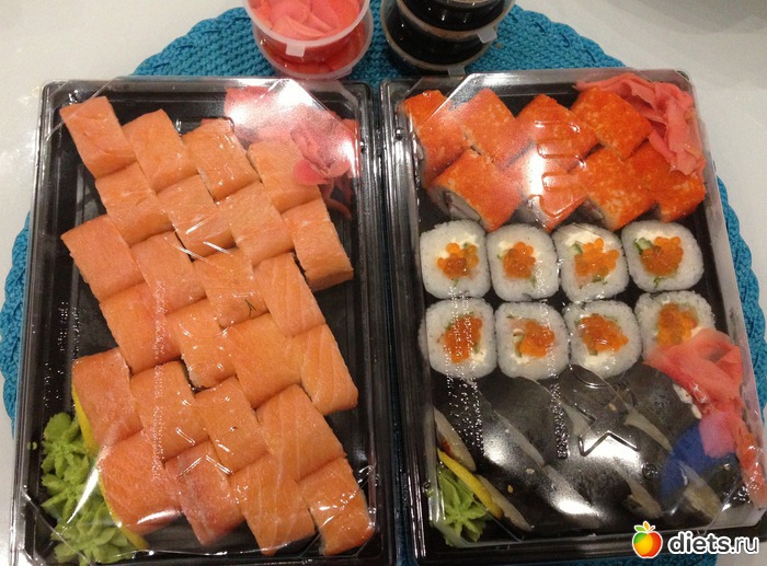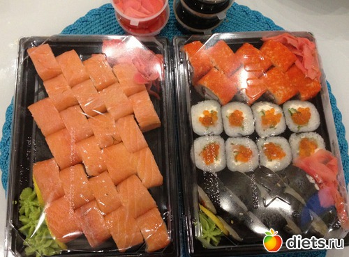 А обед у меня был поздний, он же и ужин! Тут у нашей девочки с сайта, Маришки, в отчёте углядела суши и загорелась так, что сегодня купили с мужем и 400грамм в меня пролетели как в топку!