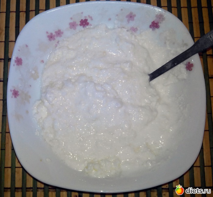 Банальный творог с банальным сахаром и банальным йогуртом. Потом подумал и добавил еще кусочек хлеба.