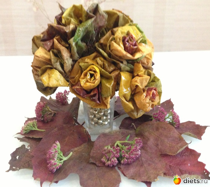 В-третих я сделала букет из кленовых листьев, после увиденного отчётика Ляночки!