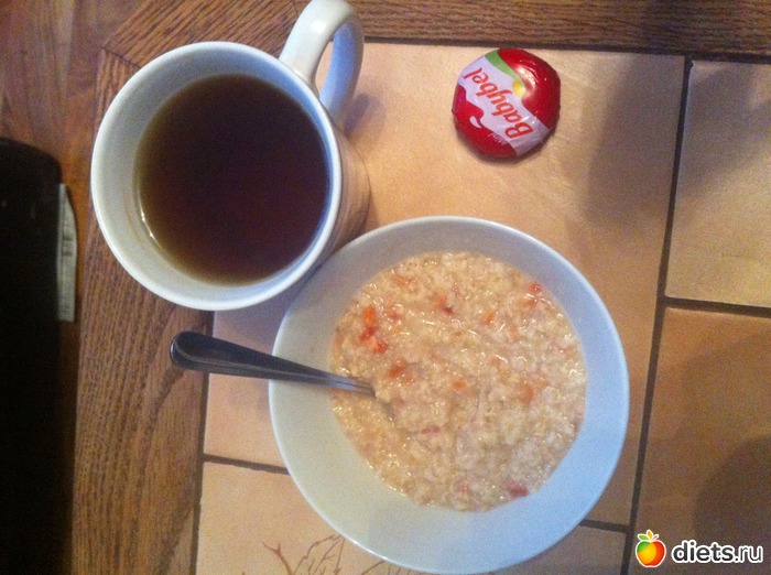 1. овсяная каша с клубникой, сыр Babybel, чай