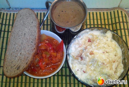 Геркулес. Лечо. И омлет из СВЧ-печки.