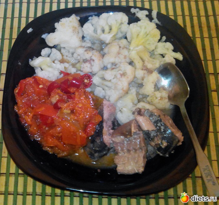 Поэтому в следующий раз я решил ограничиться малым. Цветная капуста, лечо, консервированный тунец.
