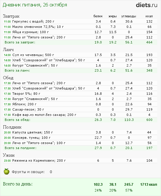Сытный обед получился. Тут и лечо с хлебом. Творог с яблоком, сахаром и йогуртом. Плюс кофе. Вот никак не ожидал, что по калориям выйдет так много.