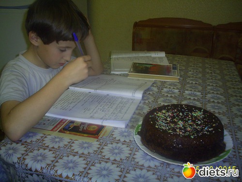 Мы его промазали карамельной сгущенкой а внук украсил и сторожил, чтобы не съели, пока он гранит науки грыз.