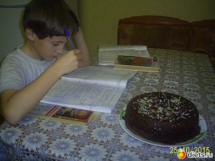 Мы его промазали карамельной сгущенкой а внук украсил и сторожил, чтобы не съели, пока он гранит науки грыз.