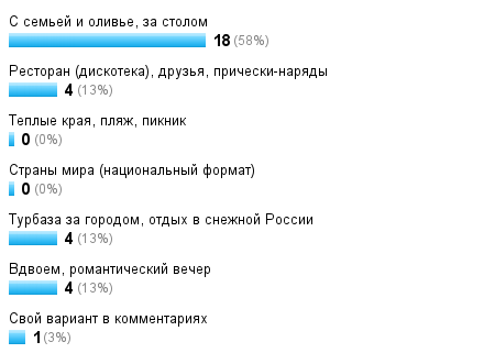 С семьей - проще всего, но так еще успеем. Варианты в опросе ввела свои. на что фантазии хватило. Бюджета, правда хватило бы не на любой, уж точно на Бразильский карнавал не замахиваюсь.