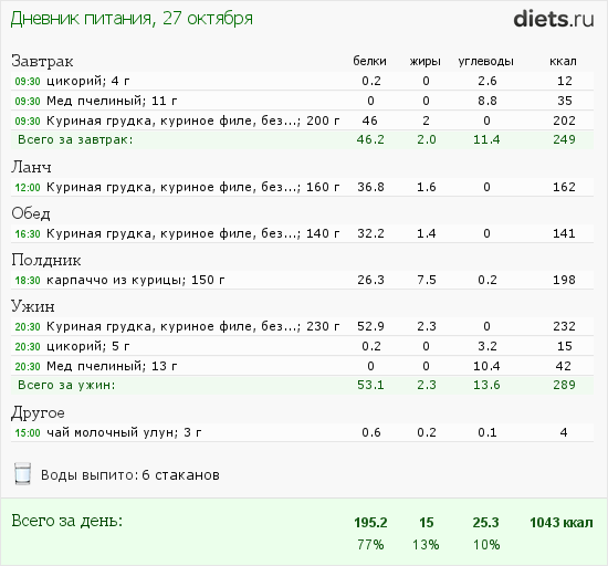 Да, кстати, отступление сегодня было- это 2 раза добавляла мёд в цикорий, очень тошнило сегодня, а мёд мне помогает!
