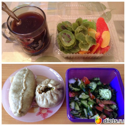 О: манты с тыквой, салат
