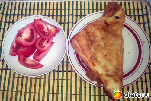 Один помидор и одна самса. Ее калорийность очень примерная. Поэтому я и стараюсь не покупать и не изготавливать всяких пирожков - замаешься считать.