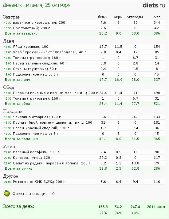 По еде день вышел так себе... Не очень хорошо, но и не очень плохо.
